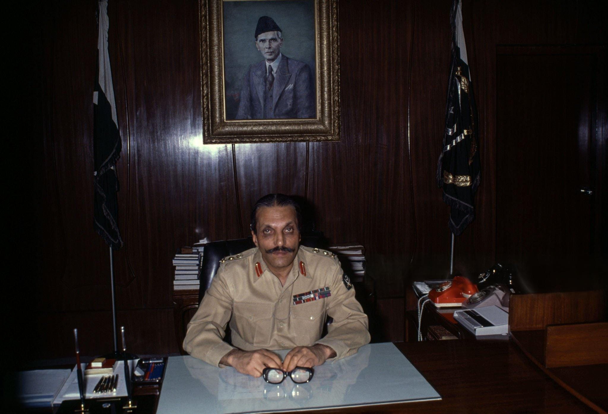 Pakistani military dictator Muhammad Zia ul-Haq in his office, 1977. After seizing power, he spent 11 years overseeing his predecessor’s execution, accelerating Pakistan’s nuclear program, and transforming the nation into an Islamic state.