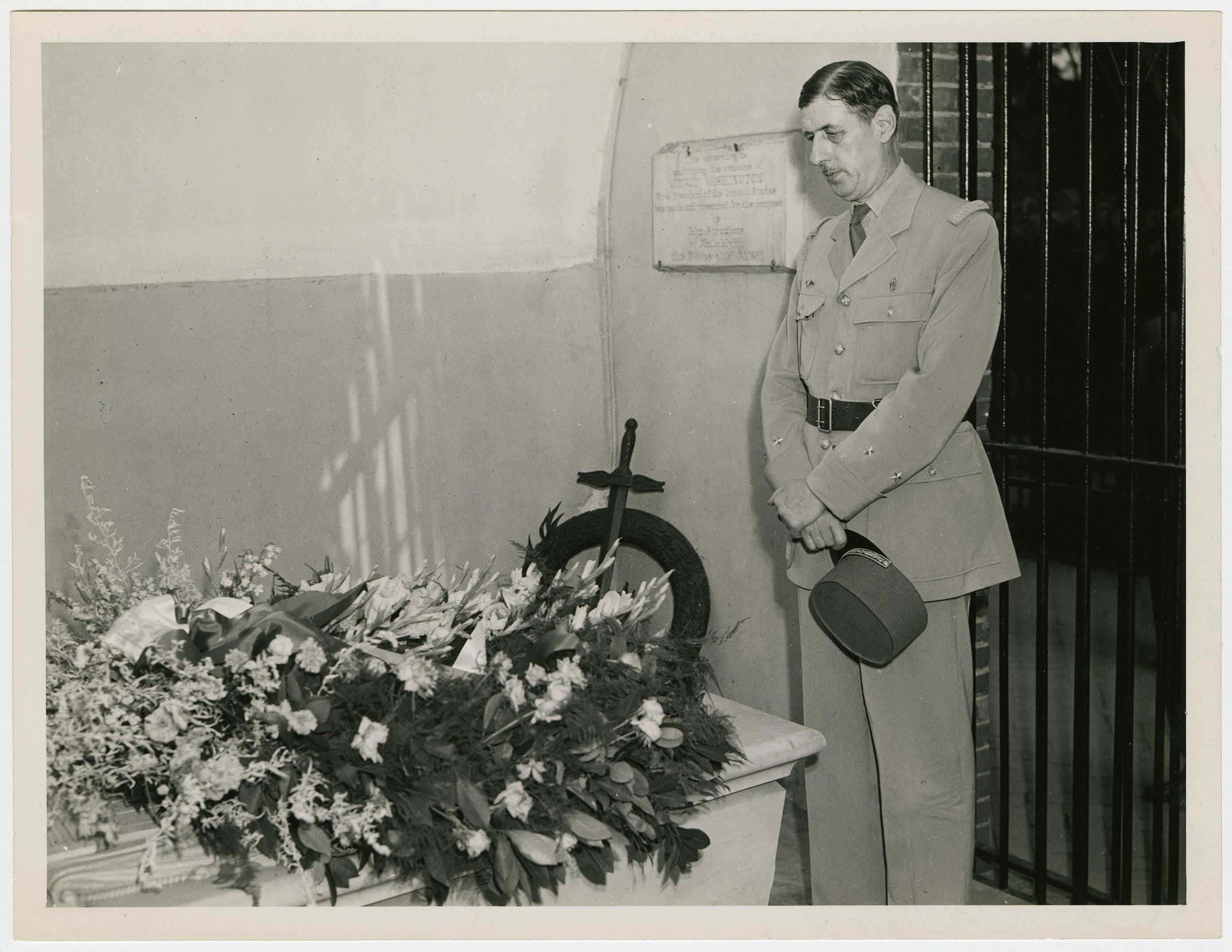 General Charles de Gaulle pays his respects at the tomb of George Washington at Mount Vernon, 1944.