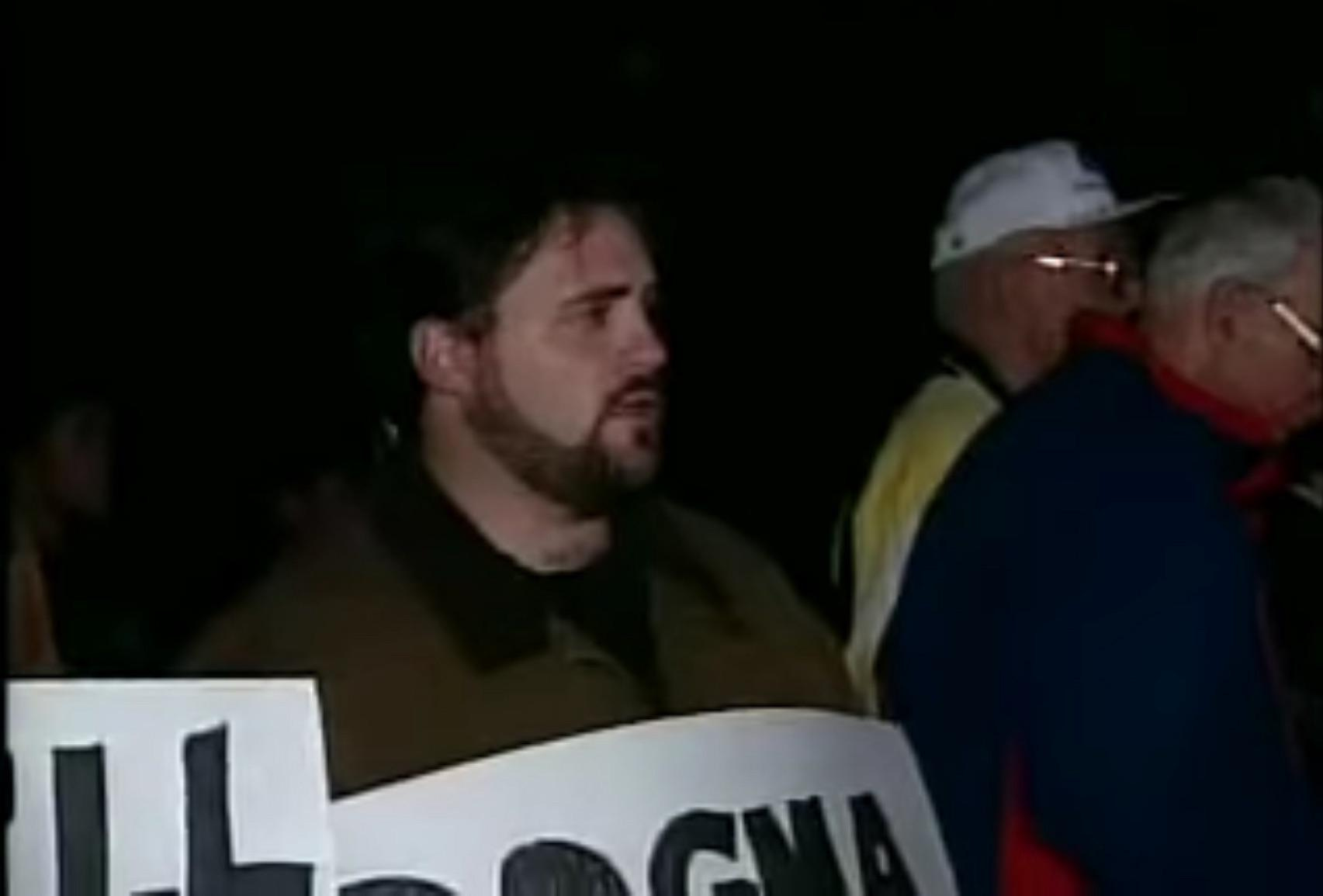 Filmmaker Kevin Smith hilariously protests his own movie ‘Dogma’ in Eatontown, New Jersey, November 12, 1999, in response to religious controversy.