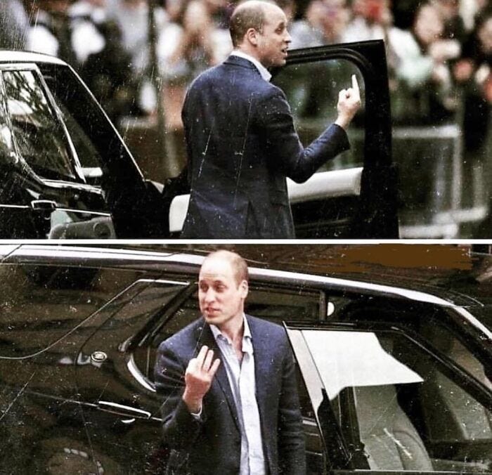 #24 Prince William Giving “Middle Finger” After Prince Louis’ Birth