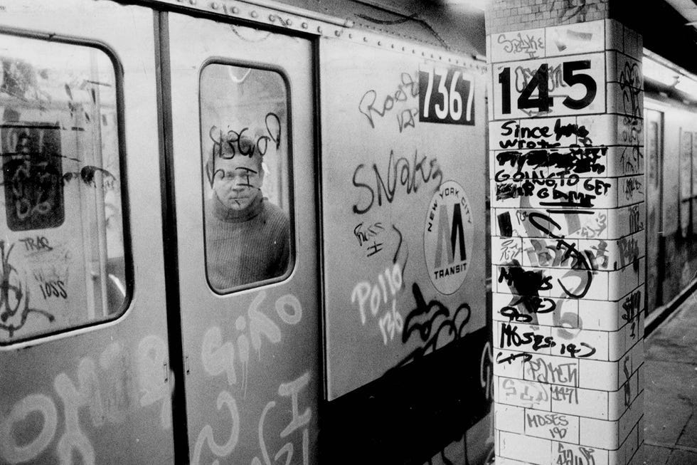 Graffiti art adorning a subway car, a raw expression of 1970s urban creativity.