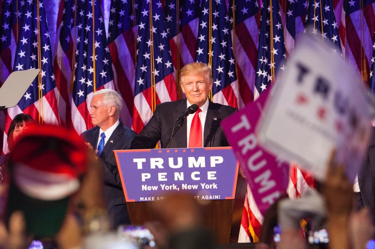 Donald Trump in Milwaukee, after defeating Hillary Clinton in the presidential election, November 8, 2016.