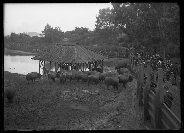 The bison pen in Golden Gate Park, San Francisco, California, c.1900
