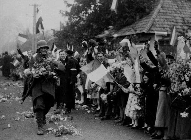 Hungarians of Czechoslovakia welcome Hungarian soldiers with flowers after the First Vienna Award/Dictate (November 1938)