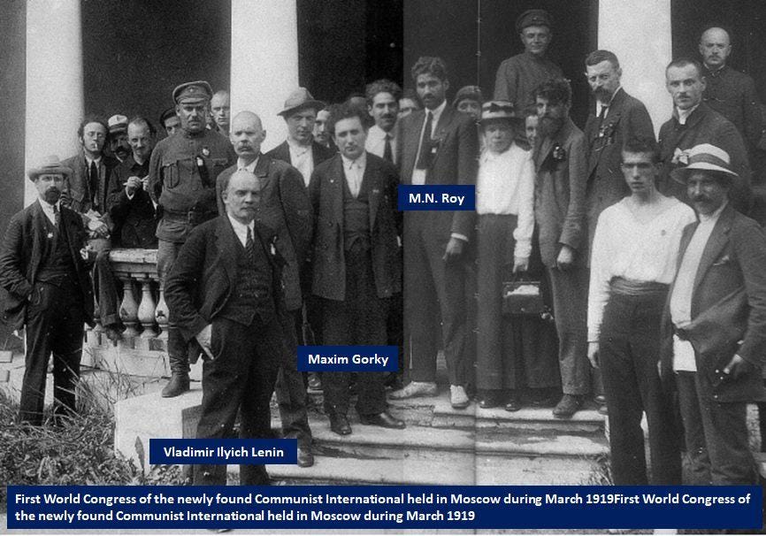 M.N. Roy, founder of the Communist parties of India and Mexico, pictured with Vladimir Lenin and Maxim Gorky in 1919.