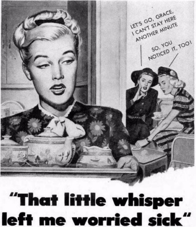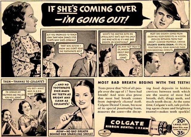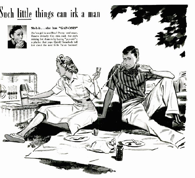 Beyond vaginal odor, women were also bombarded with ads making them paranoid about bad breath.