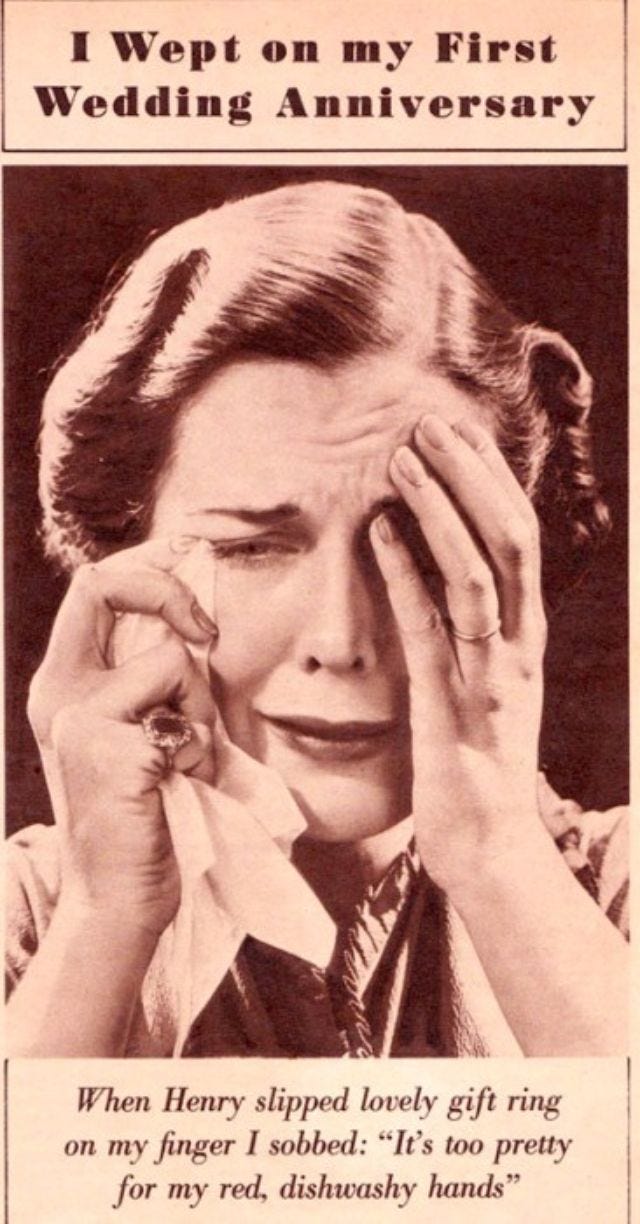 The plight of 'dishpan hands' was exaggerated to such an extreme that ads depicted women crying over them.