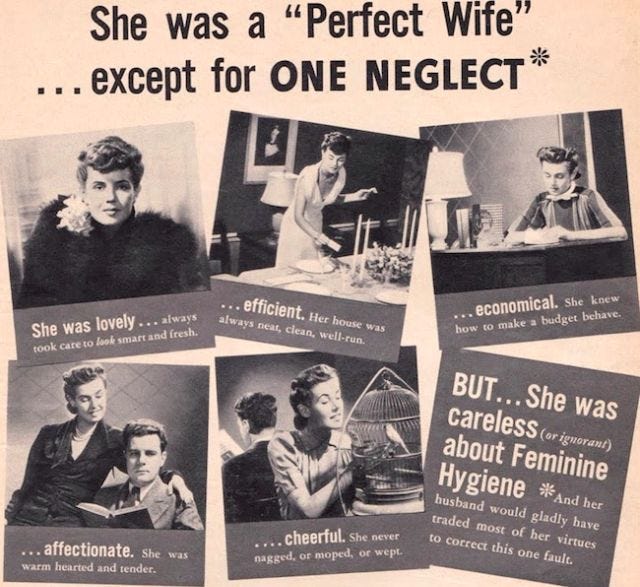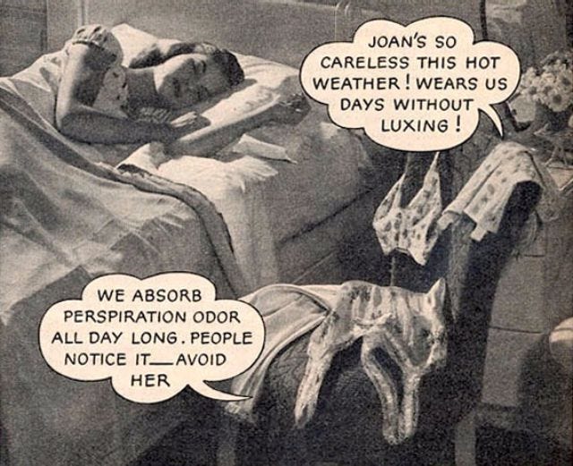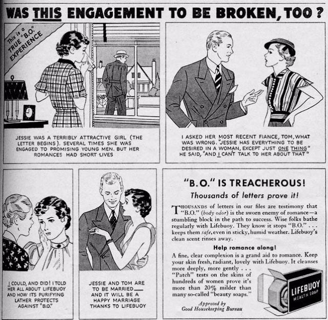 Beyond weight concerns, women were pressured by ads to fear their own natural body odor.