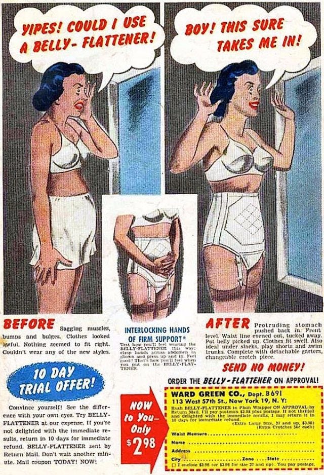 Even by the 1970s, ads continued to push products promising to sculpt the female body into an 'ideal' shape.