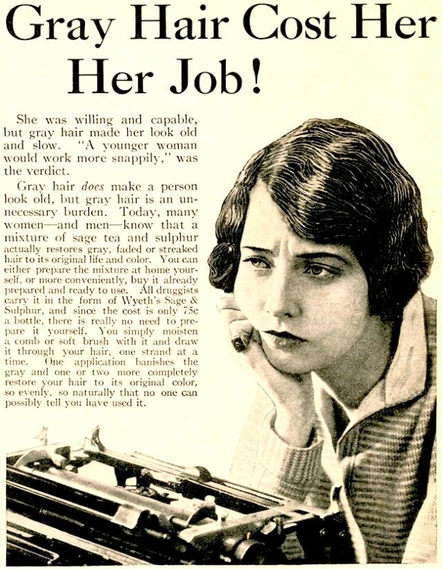 Aging was presented as a significant professional liability for women in the workforce, reflecting ageist biases.