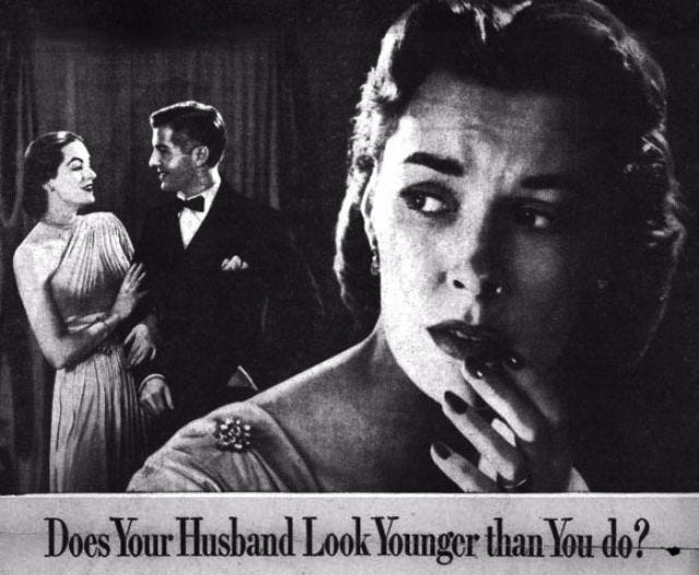 The fearmongering continued: if your husband met a younger-looking woman, your marriage was doomed.