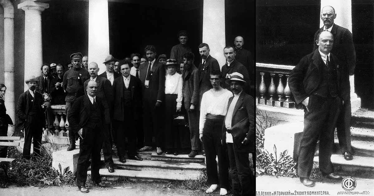 Once a key figure, Leon Trotsky is digitally removed from this 1920 photo with Lenin, illustrating his systematic eradication from official Soviet history following his exile and assassination.