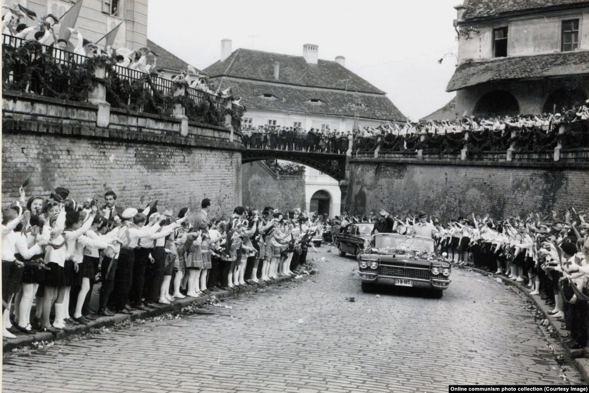 Children applaud Ceausescu’s motorcade in Sibiu, in 1967.