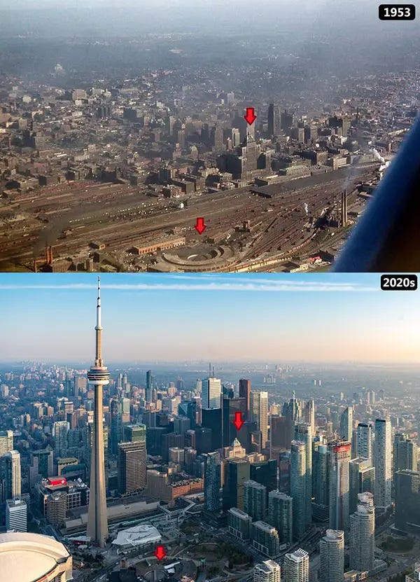 Toronto: A captivating visual comparison from 1953 to the 2020s.