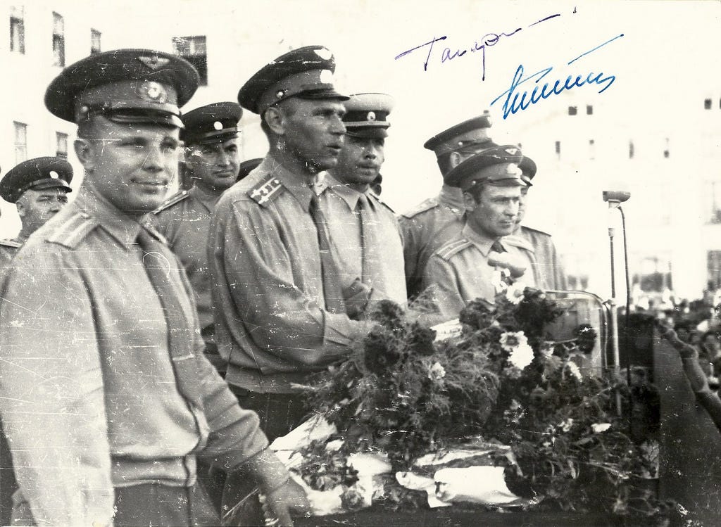 Newspapers around the globe published his biography and details of his flight. He was escorted in a long motorcade of high-ranking officials through the streets of Moscow to the Kremlin where, in a lavish ceremony, Nikita Khrushchev awarded him the title Hero of the Soviet Union.